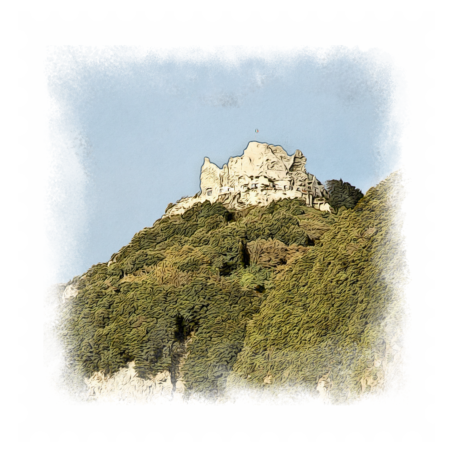 L'Eremo - scavato nel tufo - all'alba è mistico.