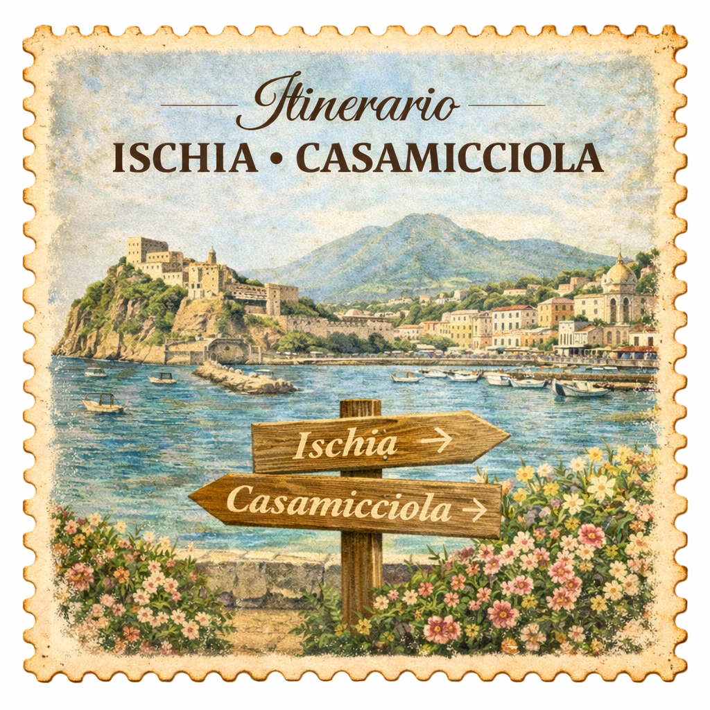 Ischia Ponte con la Torre di Guevara, il Castiglione e il tramonto dal Ponte. Il Castello Aragonese con giardini e cattedrale. Casamicciola con le Terme Belliazzi, il Bosco della Maddalena e Corso Vitruvio. Mercati, ceramiche, Cartaromana e Il Focolare. Dedica giorni extra a trattamenti termali personalizzati.