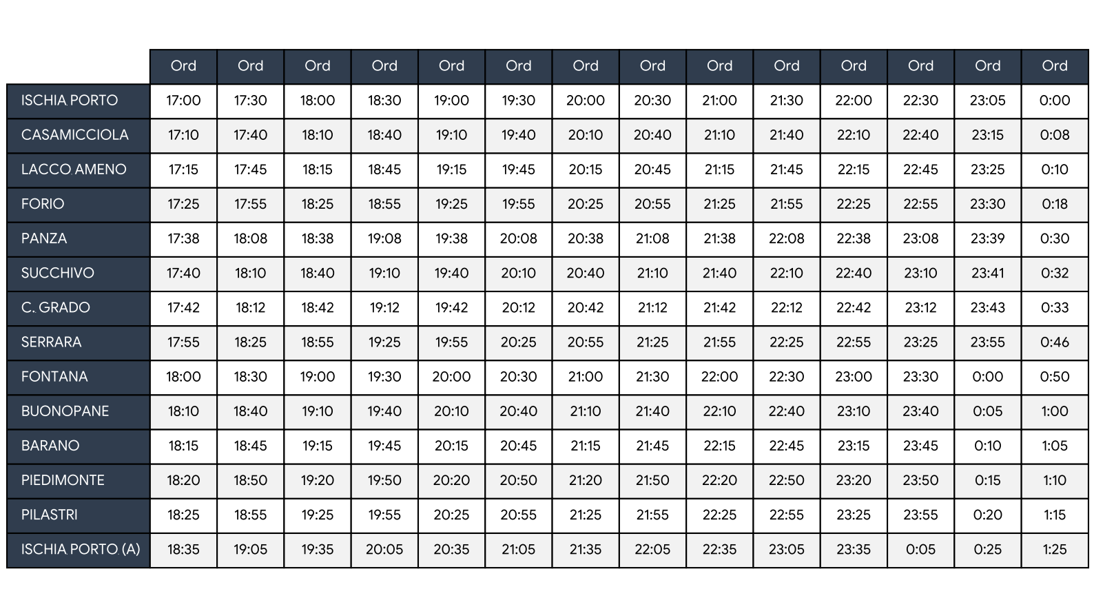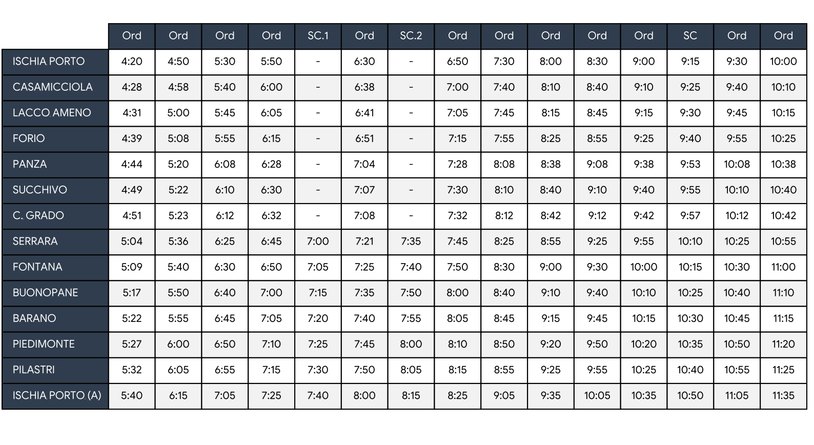 Autolinea: Ischia Porto - Barano - Fontana - Serrara - Cava Grado - Forio - Lacco Ameno - Casamicciola - Ischia Porto