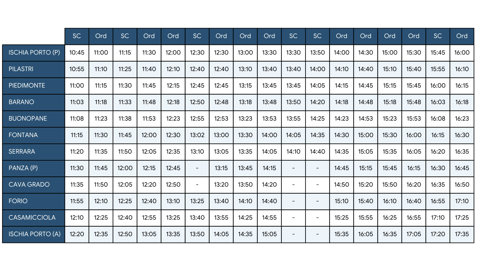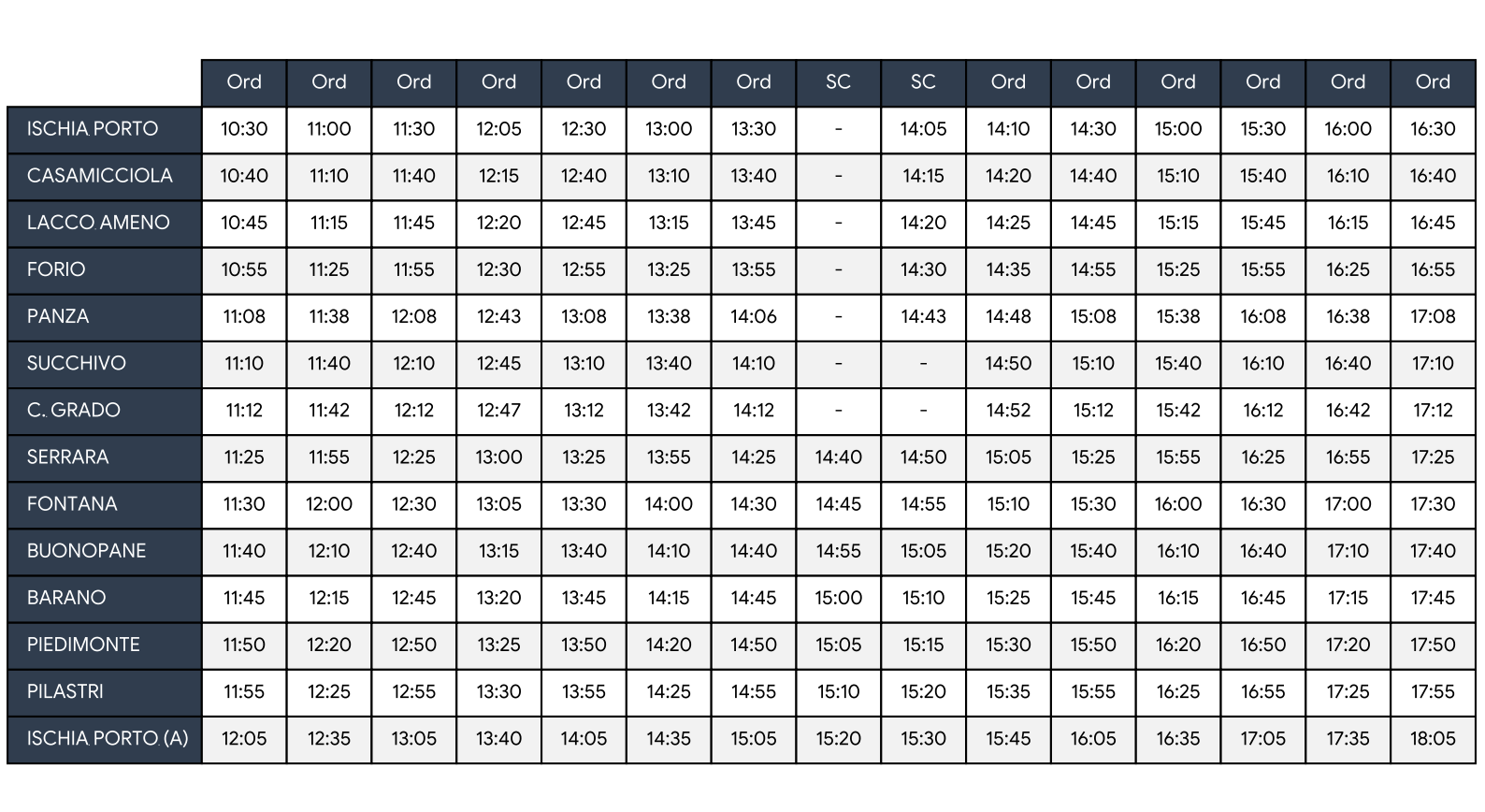 Autolinea: Ischia Porto - Casamicciola - Lacco Ameno - Forio - Cava Grado - Serrara - Fontana - Barano - Ischia Porto